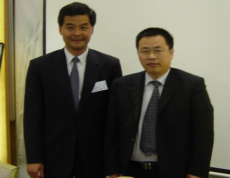 潘世炳博士在深圳與戴德梁行主席、全國政協常委、香港專業聯盟主席、香港行政會議員和召集人梁振英先生合影