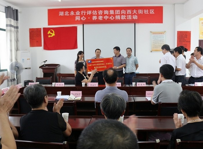 活動由咸寧市委統(tǒng)戰(zhàn)部常務(wù)副部長陳冬民主持。捐贈活動開始后,永業(yè)行總裁潘世炳作為捐款方,向西大街社區(qū)負責(zé)同志卞潔遞交了十萬元捐款資金,并表示永業(yè)行會在今后進一步關(guān)注社區(qū)居民養(yǎng)老問題,努力承擔(dān)更多的社會責(zé)任。湖北省委統(tǒng)戰(zhàn)部副部長蔡藻鮮,咸寧市委常委、統(tǒng)戰(zhàn)部長張方勝等發(fā)表了講話,并一致認為這次捐款活動,既是一項關(guān)愛社區(qū)老年人的愛心善舉,也是一項新經(jīng)濟組織服務(wù)社會民生的實踐之舉。捐贈活動結(jié)束后,大家去養(yǎng)老中心改造處進行了參觀。