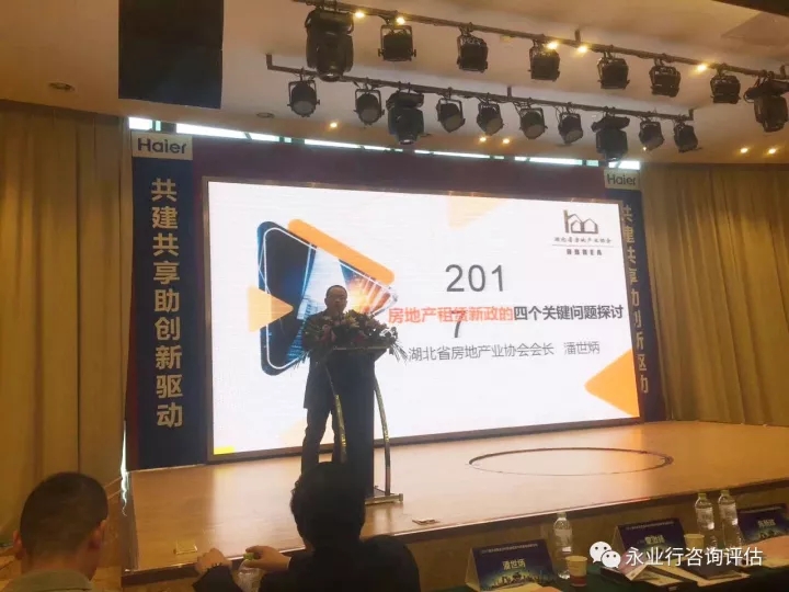 2017年10月31日下午,2017年湖北暨武漢市住房租賃市場創新發展論壇在武漢友誼國際酒店隆重舉行。湖北省房地產業協會會長、永業行總裁潘世炳受邀到會作了《房地產租賃新政的四個關鍵問題探討》的主題演講,圍繞“商改住”促進房地產租賃和去商業庫存 、正面面對并引導大量小產權房租賃、規范集體土地上建房租賃、房地產租賃新政配套政策等方面作了深入的分析與探討,受到與會代表的好評。
