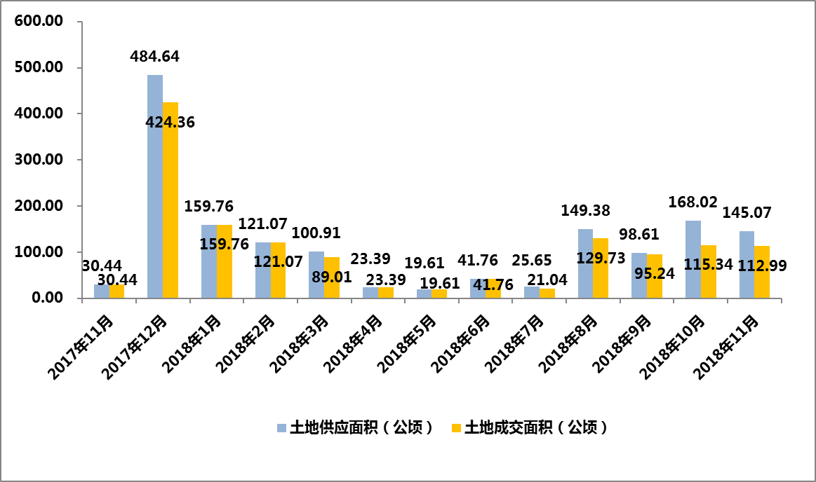 2018年11月,武漢市土地供應量環比下降13.66%,土地成交量環比下降2.04% 。