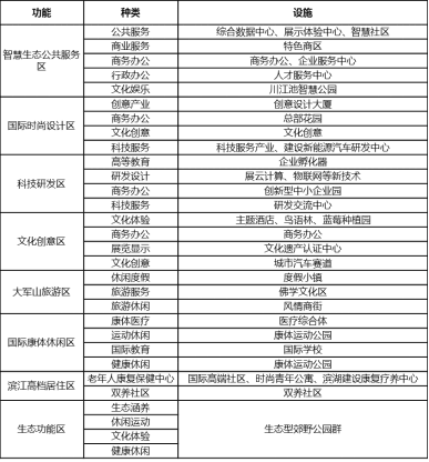 規(guī)劃:智慧生態(tài)城主要分為九個功能區(qū),具體的劃分如下:
