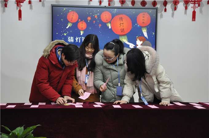 “與我同行”猜一字;“遇事不求人”打一成語;“八駿日行三萬里”打《三國演義》人名……諸如此類的燈謎近百余條。有人“團戰”,有人“獨斗”;有人一頭霧水,有人頓生靈感;有人眉頭緊鎖,有人開懷大笑。領獎處更是一番熱鬧忙碌的場景,猜對謎底的小伙伴們紛紛收獲了薯片、飲料、愛心大棗等戰利品,禮輕情意重,小小的禮品表達了公司對大家的問候與祝福。