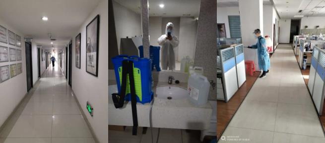 嚴格排查登記每位返崗員工的外出史和接觸史,確保復工員工的身體健康。在辦公樓入口處設置體溫測量專區,對到崗員工進行測量體溫、掃碼登記、酒精消毒等,體溫符合標準且佩戴口罩的員工才能進入辦公樓。實行A/B兩組人員間隔上崗工作制,在保證各項工作正常開展的前提下,做到復工后第一階段的14天內A/B兩組人員不見面,最大限度減少感染風險。嚴格控制現場會議,采用視頻、語音等線上方式。此外,為避免下班時人流密集,提前一小時下班,并由值班人員再次進行體溫測量登記后離開辦公區。安排專職人員每天下班后,對門廳、樓道、會議室、電梯、樓梯、衛生間以及臨時隔離間進行全面消殺,并做好消殺登記。