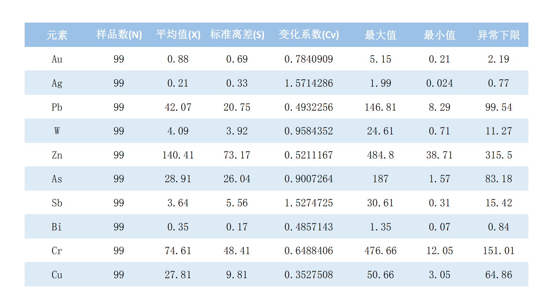 (1)均勻分布型(CV﹤0.3):Cu,說明其基本不受后期地質地球化學作用。
