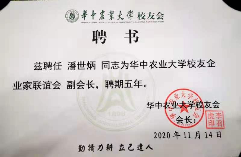 永業行潘世炳再次當選華中農大校友企業家聯誼會副會長