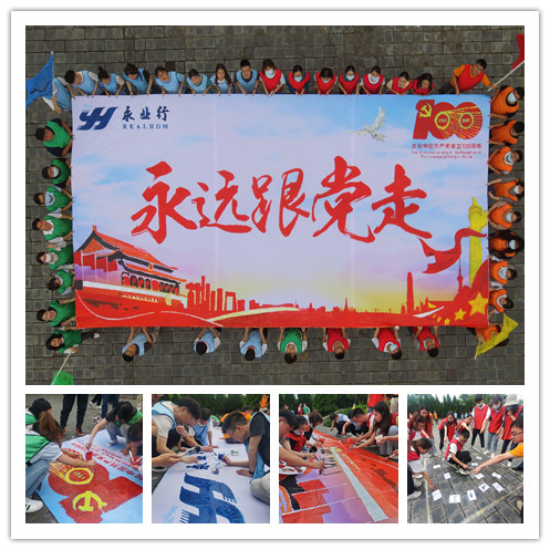 集訓設立素質拓展環節,新員工們在一系列的團隊拓展項目中,了解到只有相互理解、互相包容與相互支持,打破團隊成員之間、部門與部門之間、上下級員工之間的隔閡才能順利完成任務。并在大家的緊密協作下,完成了“永遠跟黨走”的主題巨型畫卷,以慶祝中國共產黨成立百年。