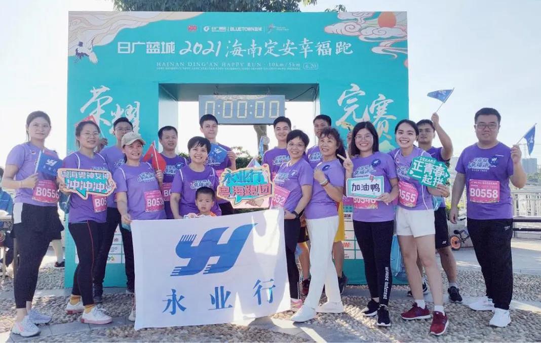 為慶祝建黨100周年,豐富人民群眾文化體育生活,6月20日,以“活力定安 幸福奔跑”為主題的2021海南定安幸福跑活動(dòng)在定安縣政府前舉行。永業(yè)行粵海區(qū)總經(jīng)理周攀、綜合咨詢部負(fù)責(zé)人孫小麗、自然資源事務(wù)部負(fù)責(zé)人張健攜粵海區(qū)部分員工及家屬參加5公里幸福跑項(xiàng)目。
