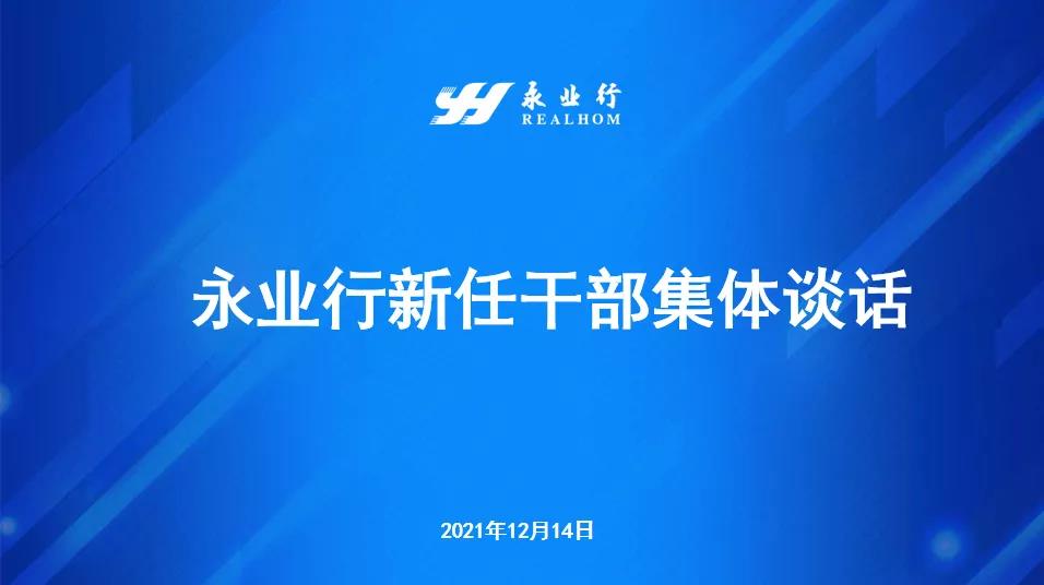 2021年12月14日下午,永業行開展新任干部集體談話,公司黨委書記、董事長潘世炳,輪值總裁王琴,副總裁程為民,資產與財稅咨詢事業部、永業行臨空項目管理(湖北)有限公司、烏蒙永業行工程管理咨詢(貴州)有限公司(投資咨詢事業群貴州區域)和各職能部門新任干部以現場或視頻的方式參加了會議。會議由副總裁程為民主持。
