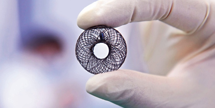 在武漢唯柯醫療科技有限公司,一個熟練工制作一枚直徑約24mm的心房分流器要用近三個小時,再經過高溫定型等多道工序完成。心房分流器用于心力衰竭的治療上,是國內首創、國際領先的心衰介入治療前沿器械。 長江日報記者高勇 攝