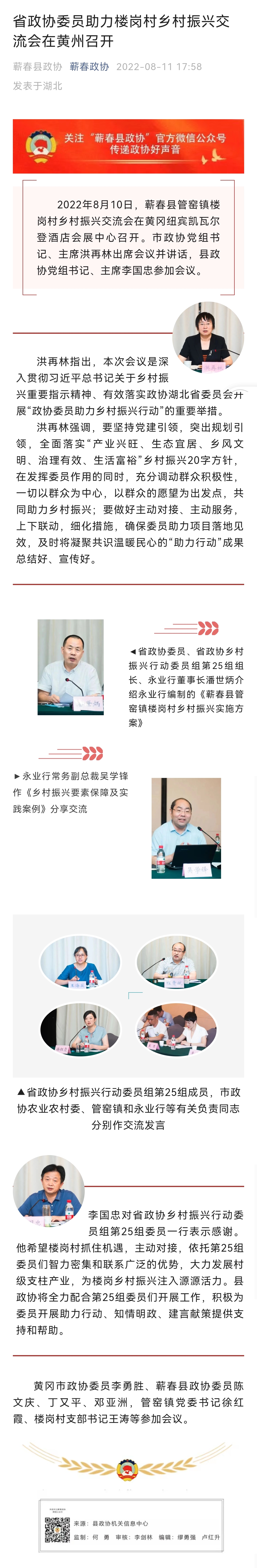 蘄春縣政協公眾號:省政協委員助力樓崗村鄉村振興交流會在黃州召開