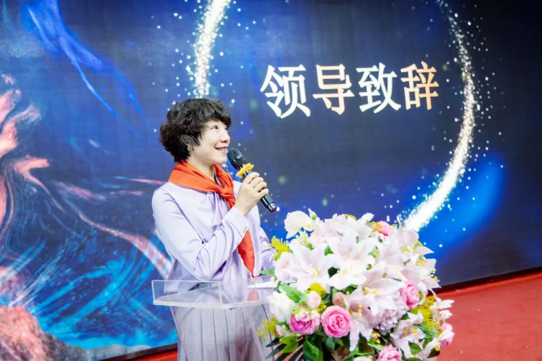 伴著熱情的掌聲,武漢市婦女事業發展促進會和經開區教育局的領導們步入新城小學,學校六年級優秀畢業生為嘉賓佩戴鮮艷的紅領巾。走進新城小學,已感受到濃濃的節日氛圍,教學樓前,扎染展區、美術展區展出了孩子們動手創作的工藝品,美術展區內,書法社的師生現場創作折扇;舞臺上,古箏表演《少年中國說》《采菊東籬下》、舞蹈表演《AI里的傳承》等表演精彩紛呈。