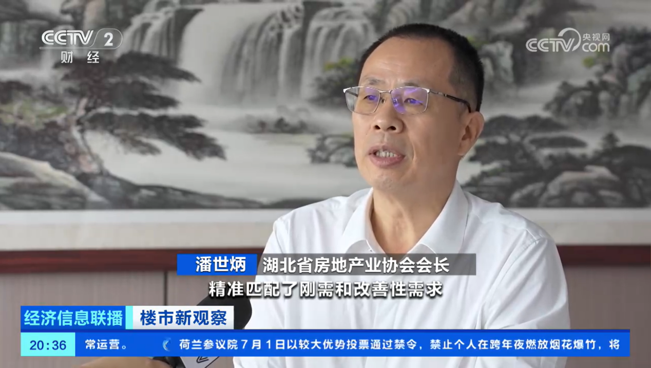 2025年7月3日,中央電視臺《經(jīng)濟信息聯(lián)播》播出“湖北武漢:樓市新政有效拉動市場 6月份新房成交超1.2萬套”報道,湖北省房地產(chǎn)業(yè)協(xié)會會長、永業(yè)行董事長潘世炳接受央視記者采訪。