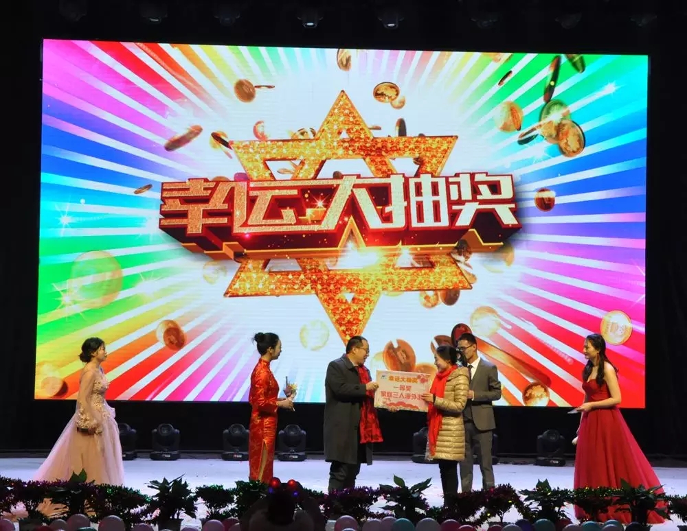 年會里除了精彩紛呈的節目,當然更少不了幸運大抽獎和微信搶紅包!便攜臺燈、按摩儀、年貨大禮包、微波爐、感恩父母旅游大獎接連誕生,歡呼聲連連。