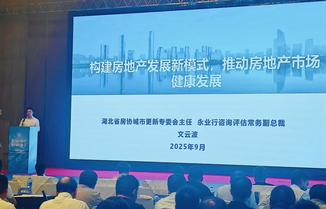 2025年9月8日,十堰市房地產開發企業協會(以下簡稱“十堰市房協”)組織舉辦“好房子”建設暨房地產高質量發展交流會,副市長楊亞軍出席會議并致辭。永業行常務副總裁文云波受邀作“構建房地產發展新模式,推動房地產市場健康發展”主題演講。
