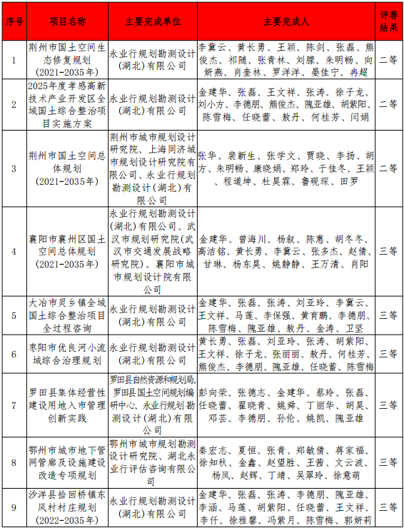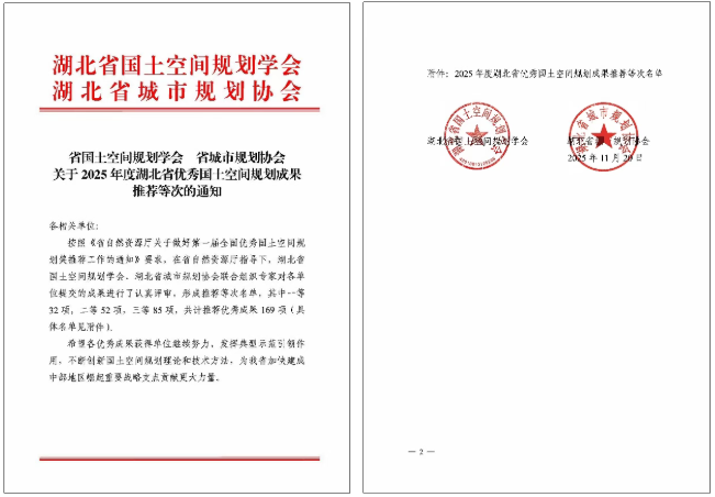 永業行榮獲2025年度湖北省優秀國土空間規劃成果二等獎、三等獎